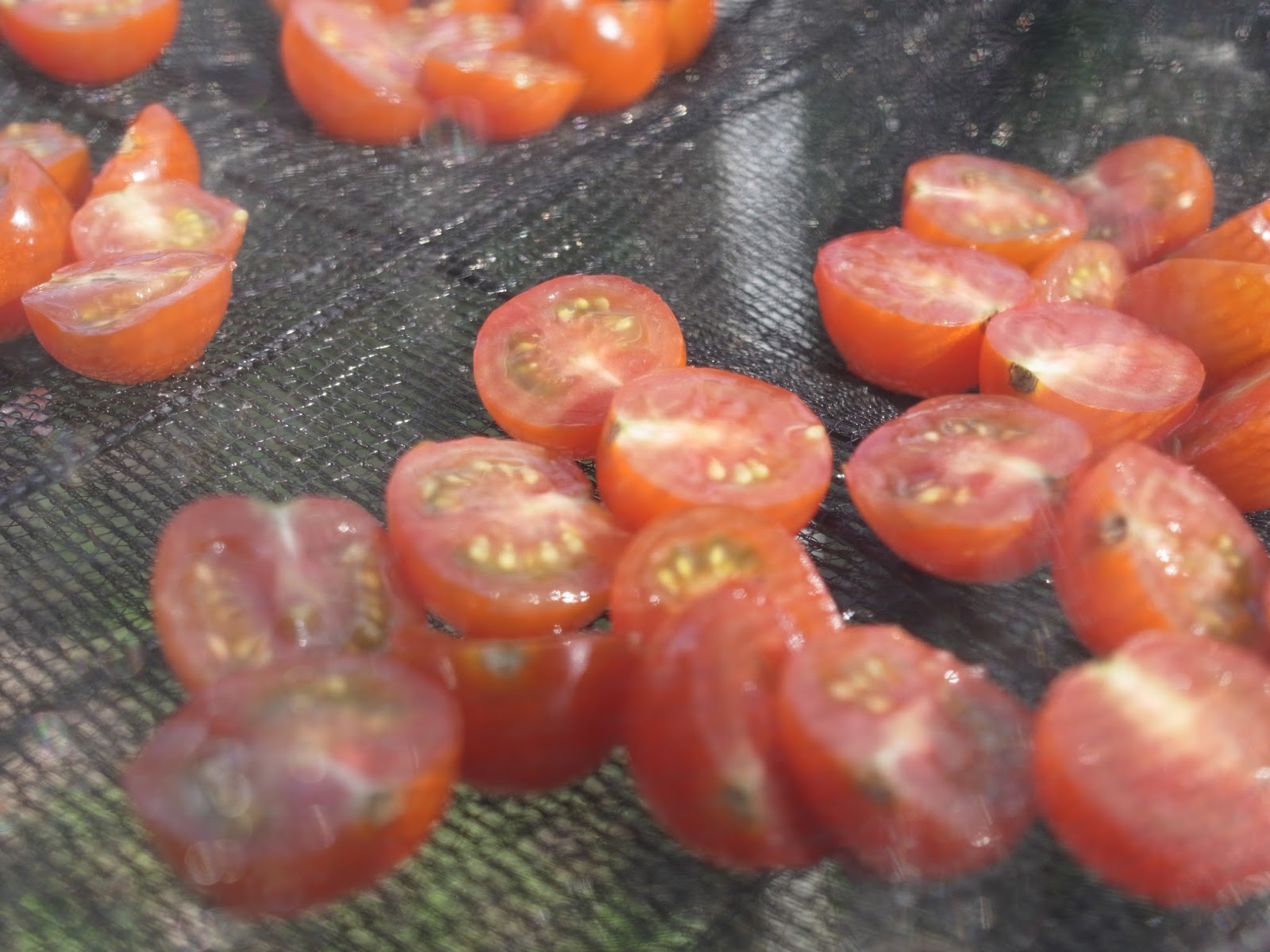 2014-07-31 ドライトマトを作る 日記 大量のミニトマトを頂いたので、痛みそうなものからドライトマトにしてみることにしました。 干し網は100均で買い足したもの。入り口が小さくて使いづらいけれど、これで100円なら文句は言えません。東京に居た頃に一度挑戦しましたが、湿度とゲリラ豪雨の連続で上手くいかず、結局オーブンで作った覚えがあります。そしてオーブンがべとべとに。上手く出来たら、オリーブオイルにバジルとかと漬けておくと、保存も効くし美味しいですよ。